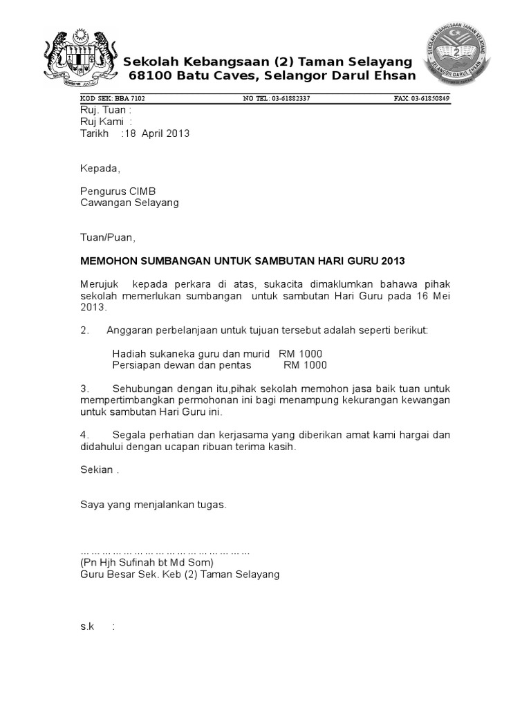 Untuk mengatasi masalah sumber dana ini dapat. Umum sedia maklum surat rasmi adalah satu karangan yang berformat dan ditulis dalam urusan rasmi sahaja. Contoh surat memohon sumbangan february 10 2015.